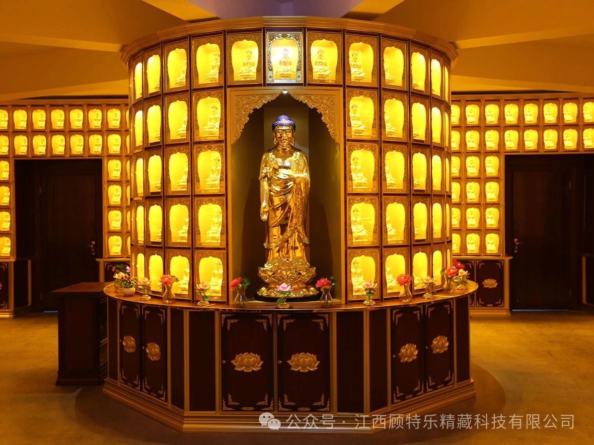 我們深信,真正的藝術與設計不僅僅是形式的創新,更是對深厚文化底蘊的尊重與傳承。作為現代萬佛墻設計的領航者,我們巧妙地將傳統佛教文化的精髓與現代設計理念相融合,為信眾打造既具時代感又不失莊嚴神圣的供奉空間。
