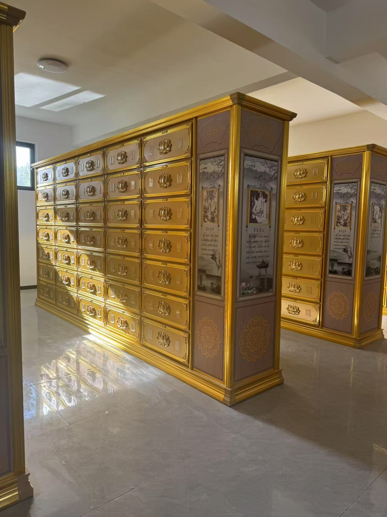 - 細節關懷入微:考慮到家屬祭掃需求,寄存柜預留紀念卡片插槽、鮮花擺放區等個性化空間;底部加裝靜音滑輪,便于工作人員靈活調整布局;柜身采用圓角設計,避免磕碰風險,處處彰顯貼心與周全。?