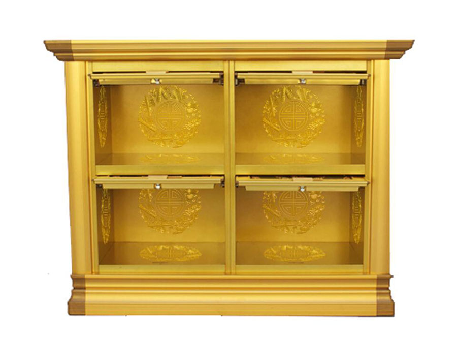 骨灰存放架是由箱體、面板、側板、頂蓋、底座、轉角、封板等構成,以及佛臺、掛落、佛 龕等相關配件構成。 箱體:分鍍鋅板、不銹鋼板、鋁板等五金板材箱體,鋁合金中空板扣接式箱體和純鋁壓鑄型 箱體。 面板:面板根據工藝不同、材料不同,風格各異、大不相同,既要起到美觀易分類作用,又 要起到防火、防塵、防潮、防蟲等作用。 側板:用于裝飾和保護箱體側面的作用,又可根據現場,對存放架分類的標識作用,一目了 然方便管理。 頂蓋、底座:都是穩固整列和整排箱體水平線,底座還起到一部分承重作用。 轉角、封板:箱體轉彎處和空隙處塑形的作用。 佛臺:由幾個骨灰存放架組成一個小型佛龕臺,用于放置佛像。 佛龕、掛落:整排存放架為了劃分區域,在每個區域靠墻上方,設置小型佛龕,為了美觀, 加上掛落。