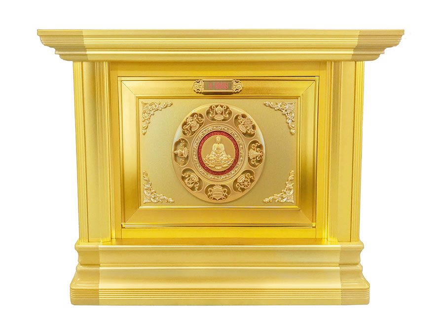 骨灰存放架是由箱體、面板、側(cè)板、頂蓋、底座、轉(zhuǎn)角、封板等構(gòu)成,以及佛臺(tái)、掛落、佛 龕等相關(guān)配件構(gòu)成。 箱體:分鍍鋅板、不銹鋼板、鋁板等五金板材箱體,鋁合金中空板扣接式箱體和純鋁壓鑄型 箱體。 面板:面板根據(jù)工藝不同、材料不同,風(fēng)格各異、大不相同,既要起到美觀易分類作用,又 要起到防火、防塵、防潮、防蟲等作用。 側(cè)板:用于裝飾和保護(hù)箱體側(cè)面的作用,又可根據(jù)現(xiàn)場,對(duì)存放架分類的標(biāo)識(shí)作用,一目了 然方便管理。 頂蓋、底座:都是穩(wěn)固整列和整排箱體水平線,底座還起到一部分承重作用。 轉(zhuǎn)角、封板:箱體轉(zhuǎn)彎處和空隙處塑形的作用。 佛臺(tái):由幾個(gè)骨灰存放架組成一個(gè)小型佛龕臺(tái),用于放置佛像。 佛龕、掛落:整排存放架為了劃分區(qū)域,在每個(gè)區(qū)域靠墻上方,設(shè)置小型佛龕,為了美觀, 加上掛落。