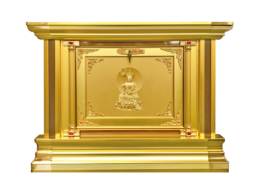 骨灰存放架是由箱體、面板、側板、頂蓋、底座、轉角、封板等構成,以及佛臺、掛落、佛 龕等相關配件構成。 箱體:分鍍鋅板、不銹鋼板、鋁板等五金板材箱體,鋁合金中空板扣接式箱體和純鋁壓鑄型 箱體。 面板:面板根據工藝不同、材料不同,風格各異、大不相同,既要起到美觀易分類作用,又 要起到防火、防塵、防潮、防蟲等作用。 側板:用于裝飾和保護箱體側面的作用,又可根據現場,對存放架分類的標識作用,一目了 然方便管理。 頂蓋、底座:都是穩固整列和整排箱體水平線,底座還起到一部分承重作用。 轉角、封板:箱體轉彎處和空隙處塑形的作用。 佛臺:由幾個骨灰存放架組成一個小型佛龕臺,用于放置佛像。 佛龕、掛落:整排存放架為了劃分區域,在每個區域靠墻上方,設置小型佛龕,為了美觀, 加上掛落。