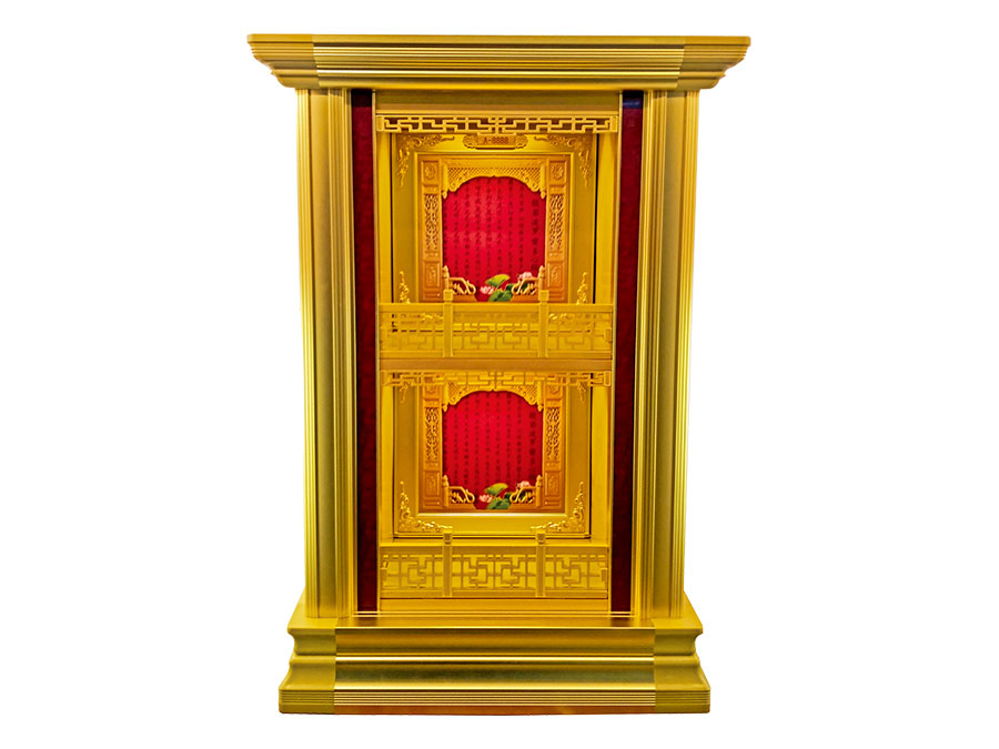 骨灰存放架是由箱體、面板、側(cè)板、頂蓋、底座、轉(zhuǎn)角、封板等構(gòu)成,以及佛臺、掛落、佛 龕等相關(guān)配件構(gòu)成。 箱體:分鍍鋅板、不銹鋼板、鋁板等五金板材箱體,鋁合金中空板扣接式箱體和純鋁壓鑄型 箱體。 面板:面板根據(jù)工藝不同、材料不同,風(fēng)格各異、大不相同,既要起到美觀易分類作用,又 要起到防火、防塵、防潮、防蟲等作用。 側(cè)板:用于裝飾和保護箱體側(cè)面的作用,又可根據(jù)現(xiàn)場,對存放架分類的標(biāo)識作用,一目了 然方便管理。 頂蓋、底座:都是穩(wěn)固整列和整排箱體水平線,底座還起到一部分承重作用。 轉(zhuǎn)角、封板:箱體轉(zhuǎn)彎處和空隙處塑形的作用。 佛臺:由幾個骨灰存放架組成一個小型佛龕臺,用于放置佛像。 佛龕、掛落:整排存放架為了劃分區(qū)域,在每個區(qū)域靠墻上方,設(shè)置小型佛龕,為了美觀, 加上掛落。